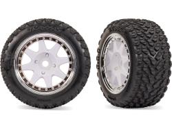 Kompletní přední kola pro RC model auta Traxxas Mini Rally. Disk 8-spoke 2.5" s chromovým kroužkem, pneu Rally, přední (2 ks). Rozměry ø76x51mm. Unašeč - šestihran 12 mm....