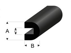 Raboesch profil gumový zaoblený 6x5mm s drážkou 2mm, délka 2m. Lze použít jako ochranu hran nebo soklovou lištu a další aplikace....