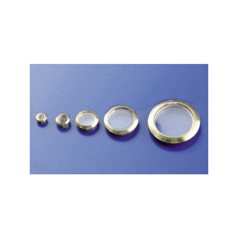 Maketové doplňky k lodím ve špičkové kvalitě - okno kruhové mosazné s rámem a zasklením 18mm (10 ks). Vnější průměr 18,5mm, vnitřní průměr cca 13mm, vhodné pro otvory o průměru cca 15mm.