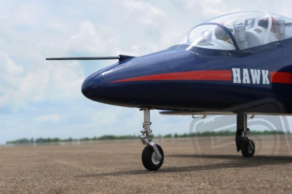 Polomaketa britského cvičného proudového letounu pro pohon dmychadlem o průměru 120 mm se střídavým motorem a 12s Li-poly akumulátorem pro zkušené piloty "jetů".