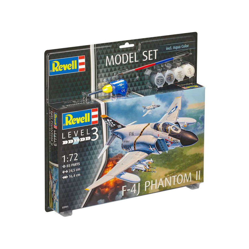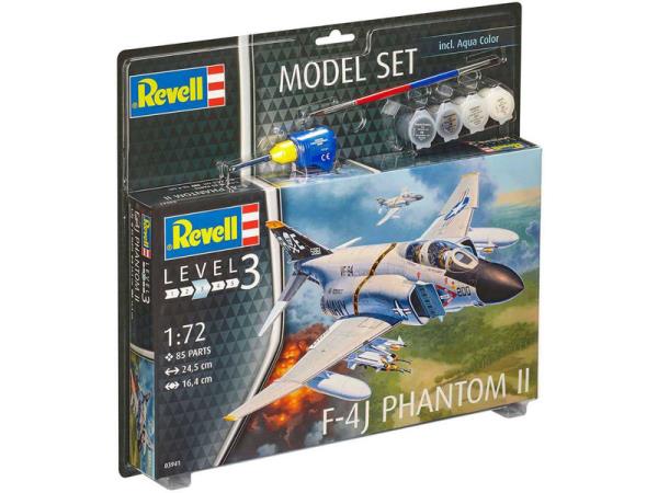 Plastikový model Revell 63941 - letadlo F-4J Phantom II v měřítku 1:72 ke slepení. Stavebnice obsahuje 85 dílků, lepidlo, štětec, barvičky, rozpětí křídel 164 mm, obtížnost 3.