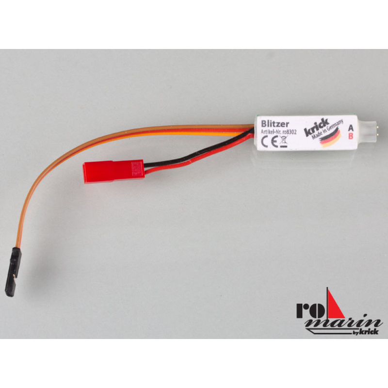 Světelný zábleskový modul vhodný pro připojení k LED i jiným osvětlením. Rychlost záblesků může být vypnuta, zapnuta, nebo ji můžete regulovat na proporcionálním kanále. Tento modul je vhodný pro připojení k přijímači.