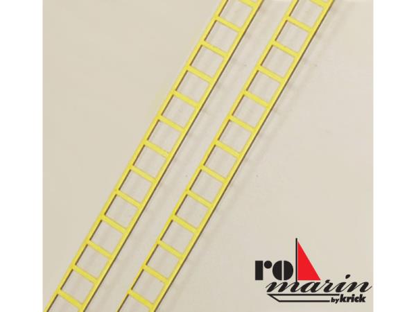 Kovové žebříky ROMARIN, pro lodní i jiné modely. Počet kusů v balení: 2 ks. Žebříky jsou vyraženy z mosazných pásů.