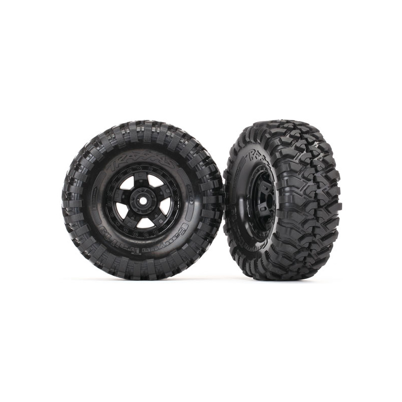Kompletní univerzální kola pro RC modely aut TRX-4. Černé Disky TRX-4 Sport s pneumatikami Canyon Trail (2 ks v balení).
