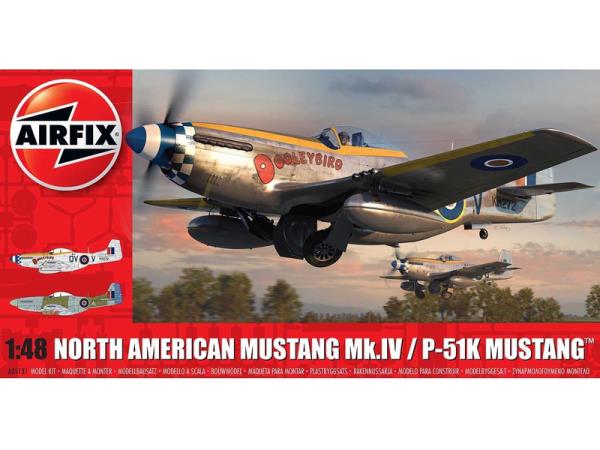 Plastikový model Airfix A05137 - letadlo North American Mustang Mk.IV v měřítku 1:48 ke slepení. Stavebnice obsahuje 147 dílků, rozpětí křídel 236 mm, obtížnost 3.