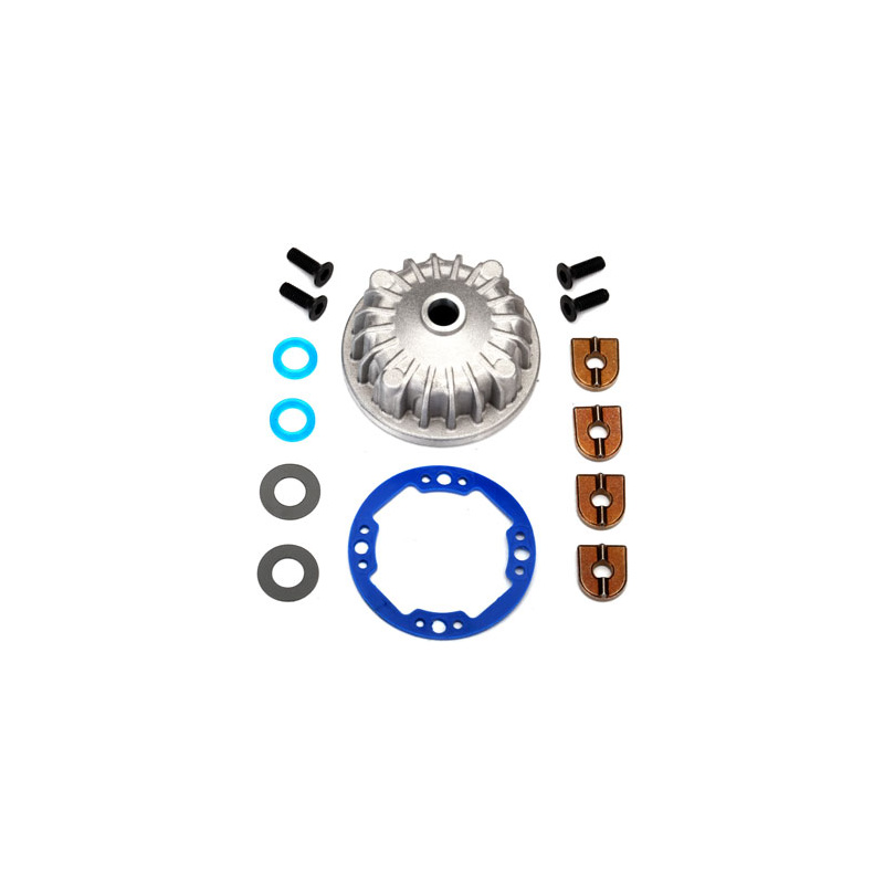 Náhradní díl pro centrální diferenciály používané v modelech Traxxas v měřítku 1:10 a 1:12: krabička diferenciálu. Obsahuje hliníkovou krabičkou, těsnění, X-kroužek (2), podložky 5x10x0,05 mm (2) a šrouby 2,5x8 mm (4).