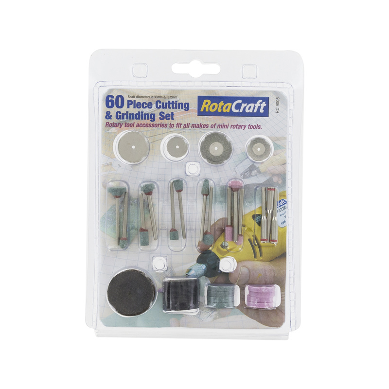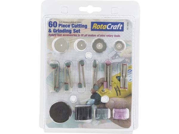 Rotacraft brousící stopkové nástroje - sada 60ks, může být použita se všemi mini elekltrickými rotačními frézkami. Kompaktní sada příslušenství, které pokrývají širokou škálu činností v profi i hobby práci. Průměr hřídele je 2,35mm a 3,2mm. Obsahuje brusné, pilové, leštící a řezací kotouče.