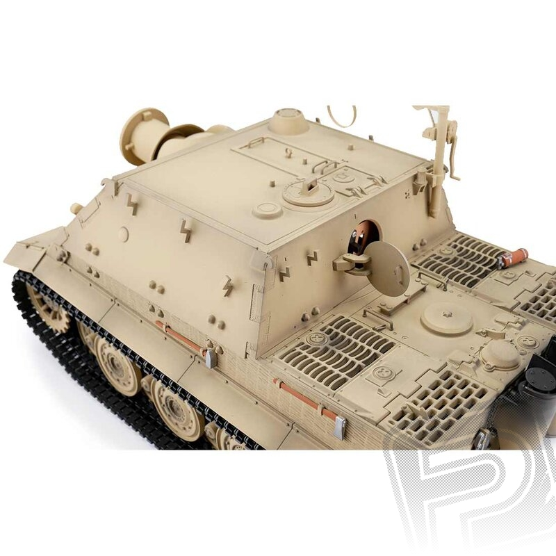 S hmotností kolem tří kilogramů je Sturmtiger ideální pro náročného zákazníka. V HOBBY edici se vyznačuje vynikající kvalitou barvy airbrush, technologií desek plošných spojů 2,4 GHz a novým reproduktorem. Tento model má vynikající jízdní vlastnosti, širokou škálu funkcí a realistický zvuk. Vysoce kvalitní pásy, hnací a vodicí kola s válečky, stejně jako bojová věž jsou vyrobeny z velmi kvalitního plastu. Spodní vana včetně převodů převodovky jsou z kovu. Mnoho malých dílů a různých samolepek dokonale završuje repliku věrného měřítka.