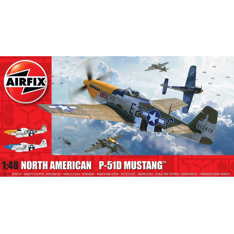 Plastikový model Airfix A05138 - letadlo North American P-51D Mustang Filletless Tails v měřítku 1:48 ke slepení. Stavebnice obsahuje 147 dílků, rozpětí křídel 236 mm, obtížnost 3.
