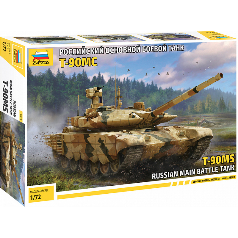 Plastikový model Zvezda 5065 - ruský hlavní bitevní tank T-90MS v měřítku 1:72 ke slepení. Stavebnice obsahuje 198 dílků, délka 135 mm.
