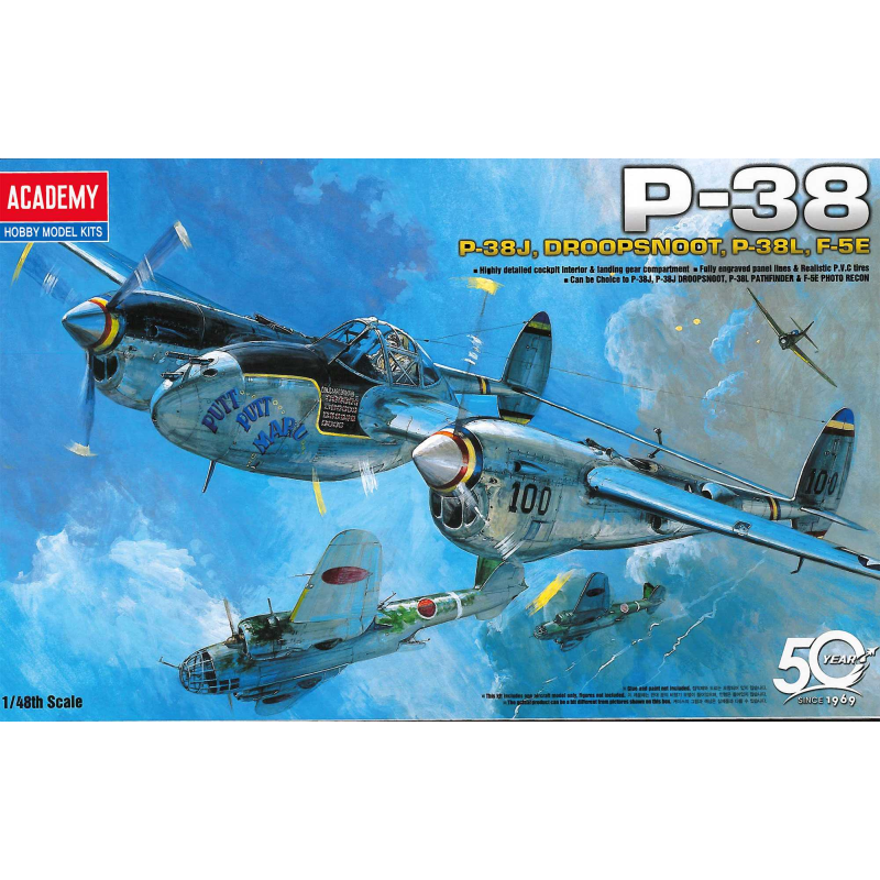 Model letadla ke slepení. Velikost: 1:48. Informace o modelu: Když v roce 1939 vzlétl první XP-38 na oblohu, Armádní letecký sbor USA okamžitě poznal, že Lightning katapultoval vývoj stíhacích letadel daleko do budoucnosti. V době, kdy byl letoun s rychlostí 523 km/h považován za velmi rychlý, vyrazil P-38 překonávající 650 km/h dech jednoduše všem, spojencům i nepřátelům. V prvních dnech druhé světové války si sice musel projít řadou menších počátečních problémů, ale jakmile byly vyřešeny, staly se z pozdějších verzí Lightningu vynikající stroje schopné zastat eskortní roli na velmi dlouhé vzdálenosti a/nebo unesly i těžké zbraně. Piloti 475. stíhacího křídla stanovili díky instruktáži plukovníka Charlese Lindbergha o nízké spotřebě paliva záviděníhodný rekord v jižním Pacifiku. Je docela pravděpodobné, že při jedné nebo více příležitostech letěl Lindbergh s Putt Putt Maru plukovníka Charlese H. MacDonalda, jednoho z vynikajících leteckých es bojujících na frontě v Tichomoří. Detaily modelu: Měřítko: 1:48 Doporučeno pro děti od 14 let. Upozornění: Nebezpečí udušení! Výrobek obsahuje malé části. NEVHODNÉ PRO DĚTI DO 3 LET!