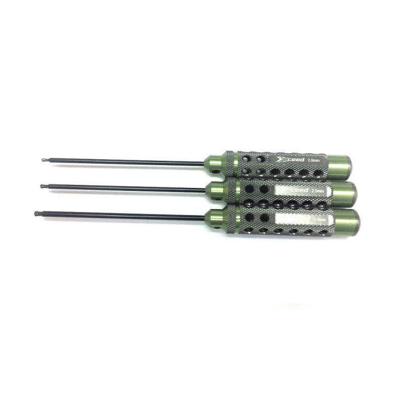 Toto je Imbus sada šroubováků Xceed s kuličkou (3 ks.) s novým vzhledem a novým designem. Díky poutavým 2 barevným tónům (zelená a Gun barva) z eloxovaného dutého hliníkového designu rukojeti a špičkám HSS, které poskytují příjemně vypadající, pohodlný a lehčí pocit. Také díky nim jsou odolnější a zároveň zajišťují dobrou přilnavost k hlavě šroubu.