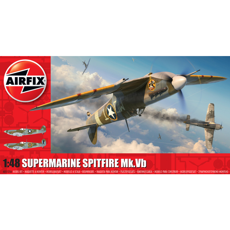 Plastikový model Airfix A05125A – britská stíhačka Supermarine Spitfire Mk.Vb v měřítku 1:48 ke slepení. Stavebnice obsahuje 143 dílků, rozpětí křídel 234 mm, obtížnost 3.