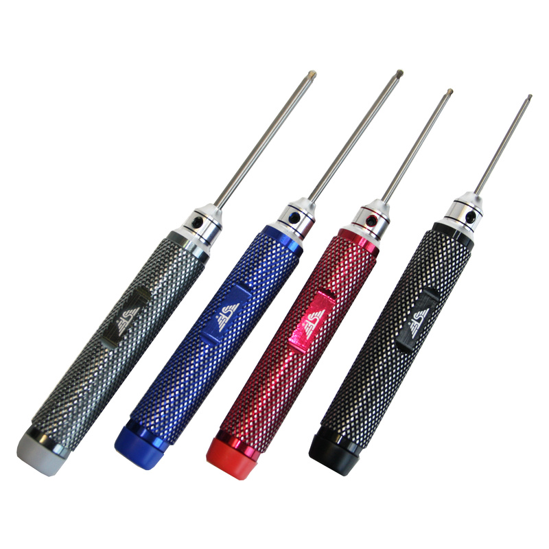 Sada imbus šroubováků s kuličkou z HSS oceli, rozměry 1.5 mm s dříkem 45 mm, 2.0 mm s dříkem 50 mm, 2.5 mm a 3.0 mm s dříkem 59 mm. Šroubováky jsou celofrézované pro lepší úchop. Baleno v praktické plastové krabičce.