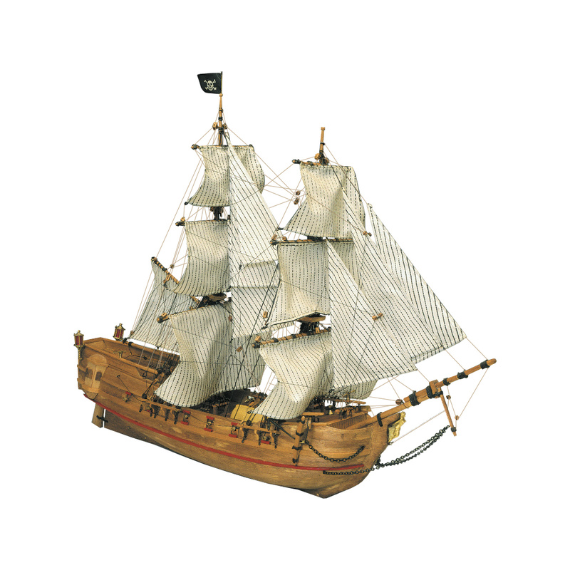 Stavebnice neplovoucího modelu lodi Mantua Model Black Falcon v měřítku 1:100 a délce 456 mm. Dvoustěžňová briga z 18. století, které velel nechvalně známý pirátský kapitán Kidd. Kit obsahuje dřevěné díly, kovové odlitky dekorací a podrobné stavební plány.
