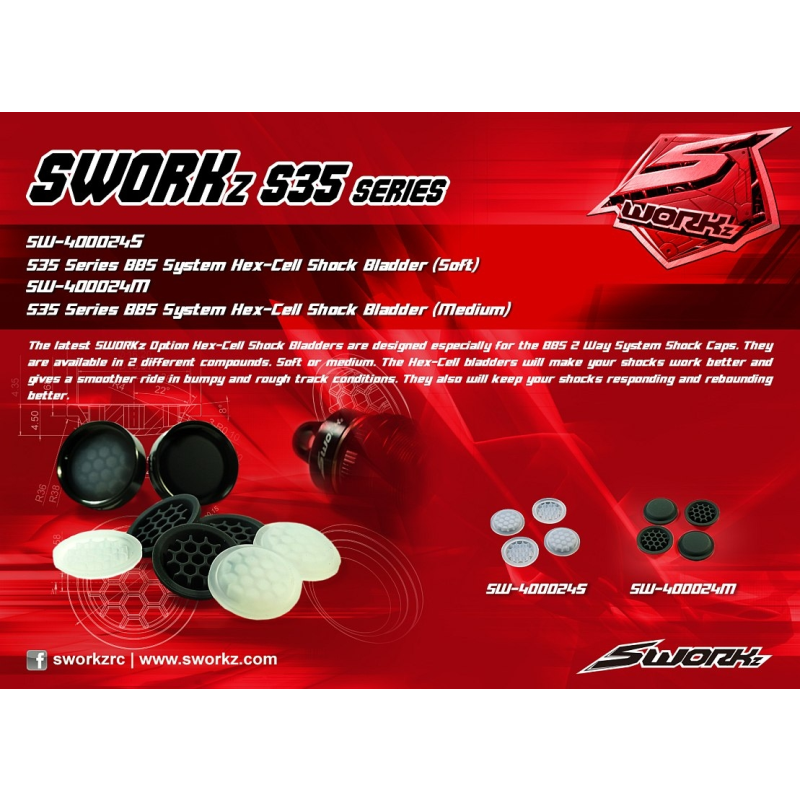SWORKz BBS System vrchní membrány olejových tlumičů, plásty, MEDIUM, 4 ks