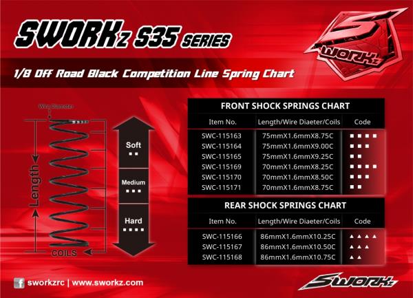 SWORKz 1/8 BLACK LINE Competition pružiny olej. tlumičů, (S3-Dot)(70X1.6X8.5), 2 ks.