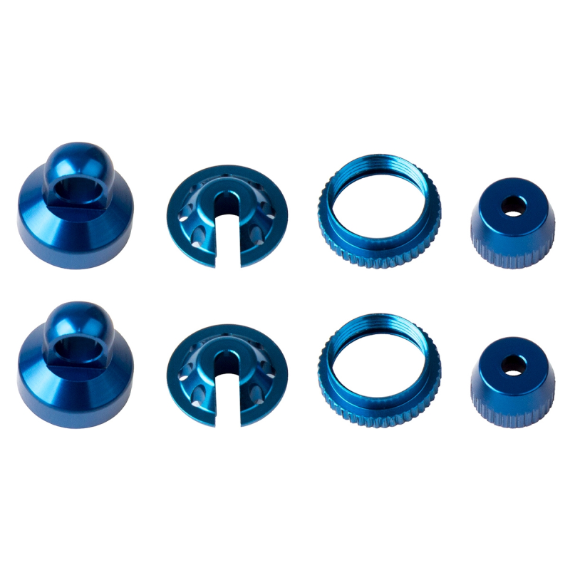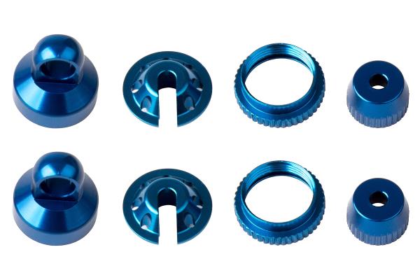 FT hliníkové díly olejových tlumičů, čepičky, podložky, kroužky, modré, 2+2+2+2 ks.
