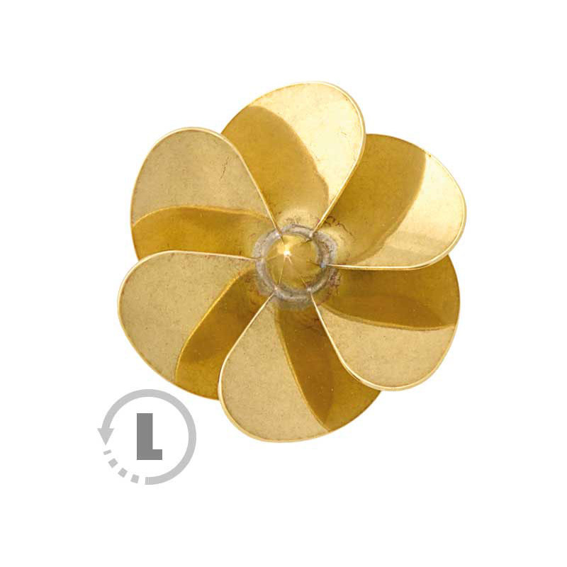Raboesch lodní šroub tř.164 6-listý, průměr 50mm, směr otáčení levý, montáž na hřídel se závitem M4, materiál mosaz pájená stříbrem.