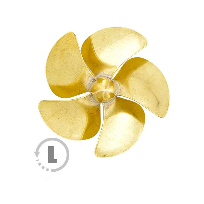 Raboesch lodní šroub tř.168 5-listý, průměr 40mm, směr otáčení levý, montáž na hřídel se závitem M4, materiál mosaz pájená stříbrem.