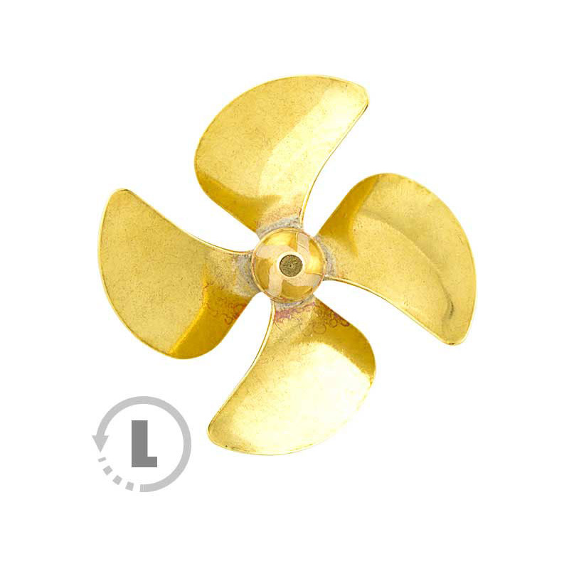Raboesch lodní šroub tř.170 4-listý, průměr 25mm, směr otáčení levý, montáž na hřídel se závitem M4, materiál mosaz pájená stříbrem.
