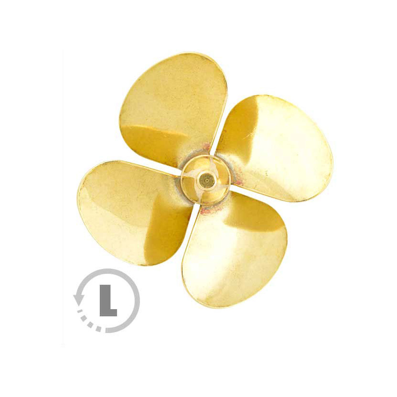 Raboesch lodní šroub tř.174 4-listý, průměr 30mm, směr otáčení levý, montáž na hřídel se závitem M3, materiál mosaz pájená stříbrem.
