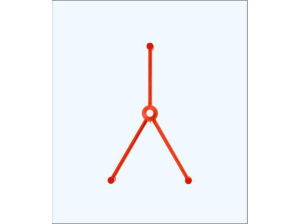 Plastová vzpěra ve tvaru V s mosazným kluzným ložiskem pro podepření 2 mm lodních hřídelí probíhajících do vody.