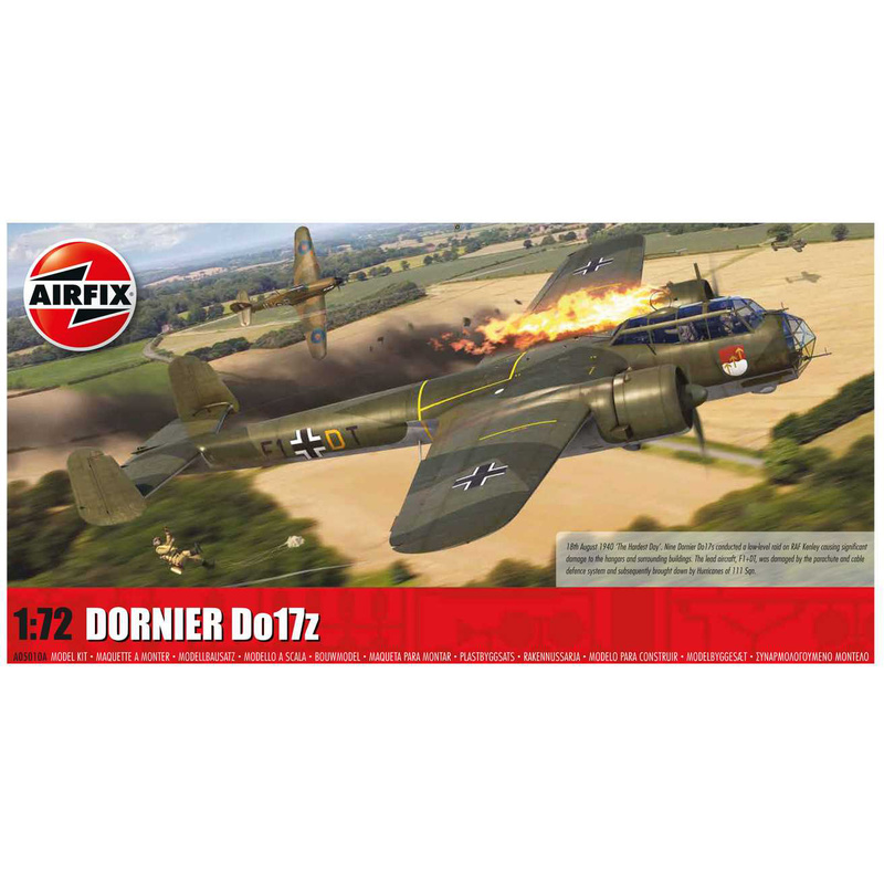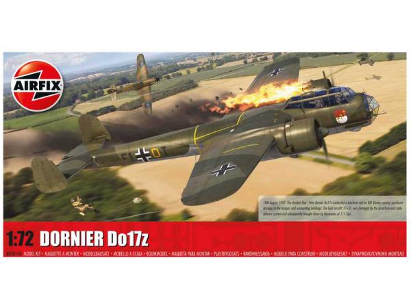 Plastikový model Airfix A05010A - letadlo Dornier Do.17z v měřítku 1:72 ke slepení. Rozpětí 250 mm, 170 dílků, stavební obtížnost 3. Vysoce detailní provedení. Balení obsahuje polepy pro 2 verze.