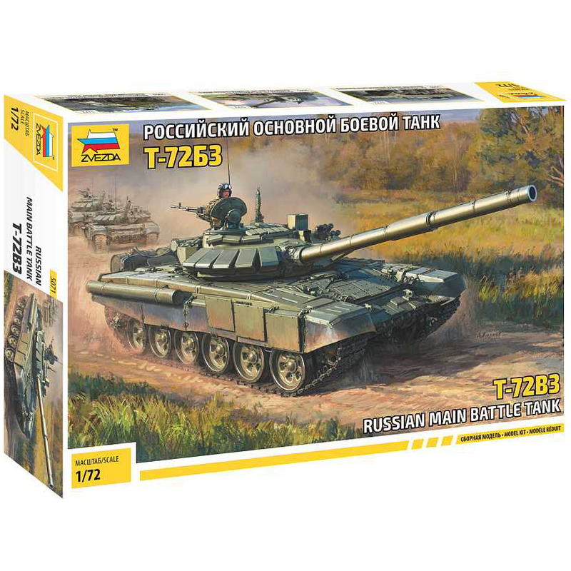 Plastikový model Zvezda 5071 - ruský hlavní bitevní tank T-72B3 v měřítku 1:72 ke slepení. Stavebnice obsahuje 191 dílků, délka 135 mm.