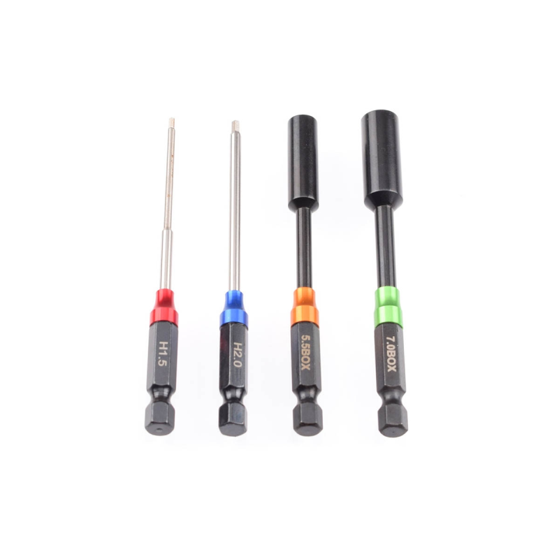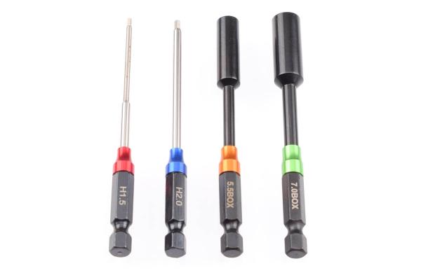 Sada klíčů RUDDOG je ideální sada pro všechny akumulátorové šroubováky. Díky standardnímu 1/4palcovému nástavci se hroty hodí pro všechny běžné akumulátorové šroubováky, což ještě více usnadňuje šroubování na vašem modelu. K dispozici jsou dvě sady: buď s šestihrannými hroty 1,5 mm, 2,0 mm, 2,5 mm a 3,0 mm, nebo jako sada s šestihrannými hroty 1,5 mm, 2,0 mm a 5,5mm a 7,0mm ořechovými hroty.