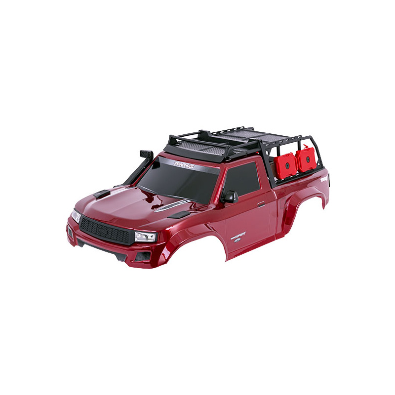 Traxxas karosérie TRX-4 Sport červená. Kompletní nabarvená karoserie, včetně mřížky chladiče, zrcátek, klik dveří, stěrače, expedičního střešního nosiče a s bezsponkovým systémem uchycení. Určeno pro montáž na #8080X.