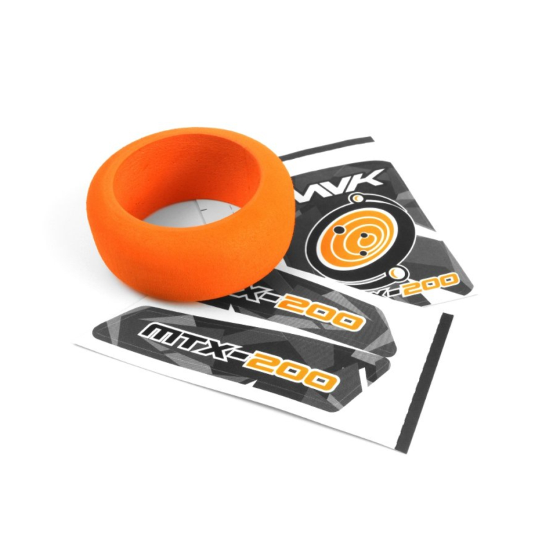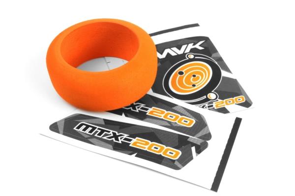 Mechový kroužek volantu vysílače a oranžové samolepky (Atom)