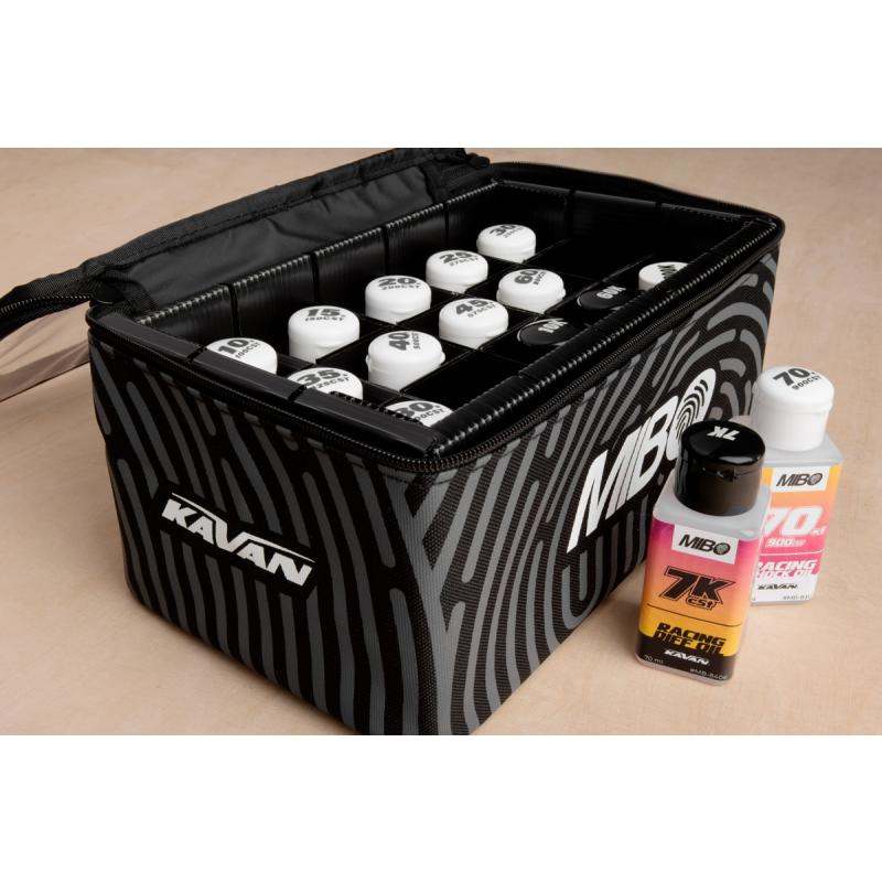 MIBO Taška na oleje je navržena tak, aby poskytovala bezpečné a organizované uložení závodních olejů do tlumičů a diferenciálu. Zajistí, že vaše kapaliny budou vždy připraveny na cestování a v depu budou neustále na dosah.