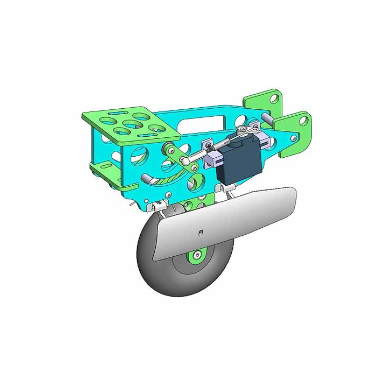 Zatahovací podvozek k modelu letadla Lentus, je dodávan včetně podvozkového kola.