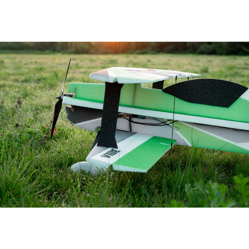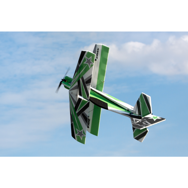 VIBE je vysokovýkonný dvouplošný 3D akrobatický speciál kategorie park-fly z pěnového EPP určený pro pohon střídavými elektromotory o výkonu 350-500 W. Pár hodin s vteřinovým lepidlem v ruce stačí pro dokončení tohoto modelu schopného létat obraty klasické F3A sestavy, stejně jako viset na vrtuli a provádět všechny ostatní 3D kousky! Je určen i pro méně zkušené piloty; s menšími výchylkami s ním může létat každý, kdo má již aspoň nějakou praxi s akrobacií a je schopen spolehlivě létat s předcházejícím modelem přemet, souvrat a výkrut. Díky nízké hmotnosti modelu případné havárie v důsledku „zapletení rukou“ příliš nebolí – a EPP díly se tak snadno opravují!