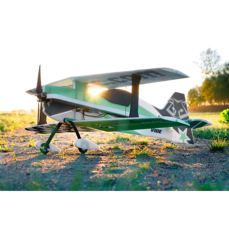 VIBE je vysokovýkonný dvouplošný 3D akrobatický speciál kategorie park-fly z pěnového EPP určený pro pohon střídavými elektromotory o výkonu 350–500 W. Pár hodin s vteřinovým lepidlem v ruce stačí pro dokončení tohoto modelu schopného létat obraty klasické F3A sestavy, stejně jako viset na vrtuli a provádět všechny ostatní 3D kousky! Je určen i pro méně zkušené piloty; s menšími výchylkami s ním může létat každý, kdo má již aspoň nějakou praxi s akrobacií a je schopen spolehlivě létat s předcházejícím modelem přemet, souvrat a výkrut. Díky nízké hmotnosti modelu případné havárie v důsledku „zapletení rukou“ příliš nebolí – a EPP díly se tak snadno opravují!
