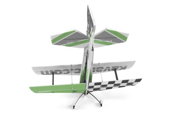 Jednodílná křídla s rozměrnými křidélky mají souměrný profil, pevnost jim dodávají uhlíkové nosníky a ve spodním křídle samozřejmě nechybějí připravené šachty pro serva. Vzpěra baldachýnu horního křídla vyztužená překližkovými díly je součástí trupu, mezikřídelní vzpěry jsou z EPP vyztuženého uhlíkem. Trup je profilový s vodorovnou částí důkladně vyztuženou uhlíkovými pásnicemi a svislou částí s velkou boční plochou pro dokonalé chování v nožovém letu. Promyšlená konstrukce zahrnuje překližkové motorové lože ukotvené do trupu pomocí uhlíkových pásnic. V trupu jsou připravené šachty serva výškovky a směrovky. Ocasní plochy jsou rovněž z uhlíkem vyztuženého EPP. Krátkými přímými uhlíkovými nebo ocelovými táhly jsou ovládána křidélka, směrovka i výškovka. Hlavní podvozek je uhlíkový se dvěma lehkými koly a EPP kryty; k opěrné laminátové desce ukotvené do trupu laminátovými držáky se upevňuje 2 šrouby. Ostruha s 3D tištěnou konzolí a lehkým pěnovým kolem je spřažena se směrovkou.