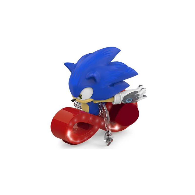 Na motorce s gumovými kolečky je pevně instalovaná licencovaná postavička Sonic se všemi detaily. Postavička je vyrobena z velmi odolného měkčeného plastu. Po stranách motorky jsou podpěry, které udržují stabilitu a při zatáčení se podpěry posouvají, čímž se motorka naklání do stran. Na bocích motorky jsou blikající LED světla, které děti zaručeně zaujmou.
