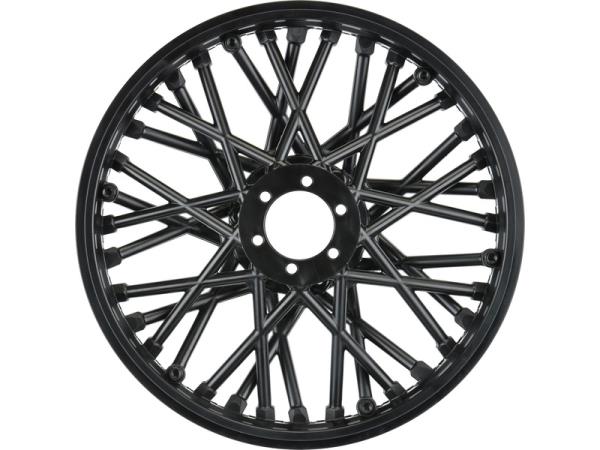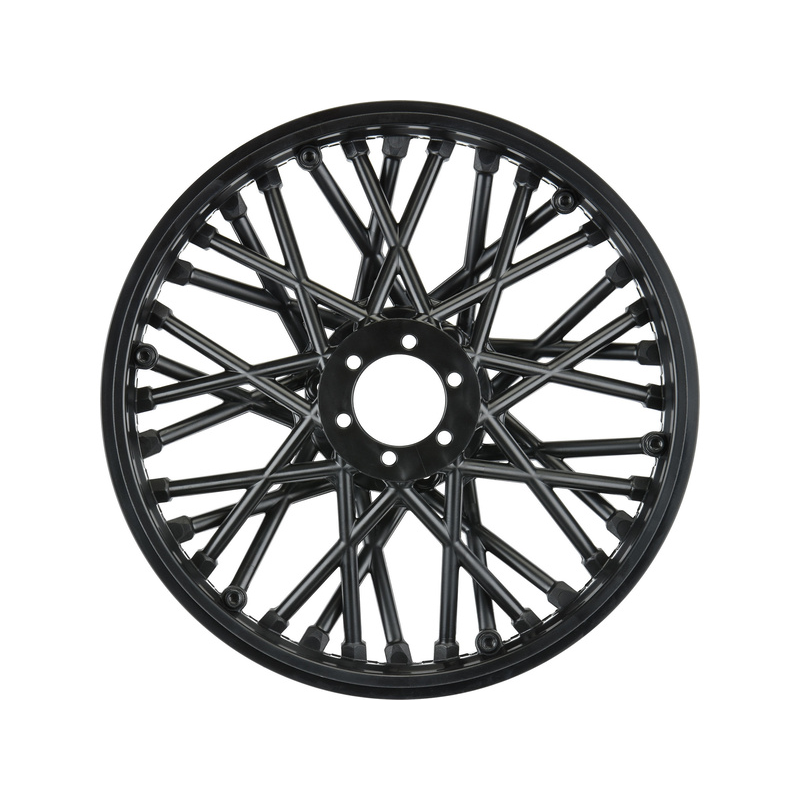 Disk předního kola Bullyspoke má silnější paprsky než standardní kola, aby se zabránilo ohýbání při tvrdých nárazech. Využívá styl V2 Bead společnosti Pro-Line, který má výhody jak ve snadném použití, tak v estetice. Díky širokému plochému 1/8 lepidlu ve stylu buggy je lepení pneumatik hračkou. Patky jsou směrovány ke středu ráfku kola. Namontujte si pneumatiky Pro-Line MX33 (PRO1022901) pro maximální vylepšení stylu a výkonu! Tato kola jsou lisována z vysoce kvalitního černého nylonu.