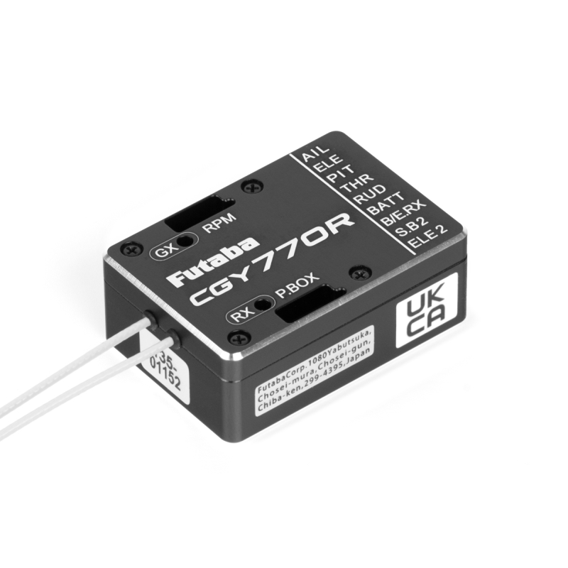 CGY770R je špičková programovatelná bezpádlová (flybarless) řídící jednotka pro vrtulníky velikostí 250-800 s integrovaným přijímačem FASSTest/T-FHSS a governorem. Špičkové senzory MEMS (Micro Electro Mechanical system), extrémně vysoká rychlost zpracování dat a pokročilý PID řídící algoritmus jej umisťují na přední místo v pořadí všech gyroskopických systémů, pokud se týká rozměrů, hmotnosti a užitných vlastností.