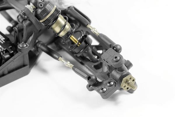 Součástí podvozku S12-2CE EVO je zcela nový 5,5mm systém kulových čepů. Součástí je také nastavitelná deska Ackermann a uhlíkové desky řízení. S12-2C EVO má nová zakřivená spodní ramena, která zajišťují nižší polohu tlumičů, což vede ke snížení těžiště.