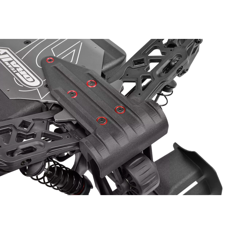 Jeho hybridní hliníkový držák motoru nabízí tři polohy motoru pro přesné nastavení vůle pastorku. Zesílené hnací ústrojí s ocelovými unašeči a robustním hlavním převodovým převodem 52T zajišťuje dlouhou životnost. Široké těhlice z Kagamy a Sketeru dodávají stabilitu a schopnosti v terénu, zatímco nové wheelie kolečko pomáhá zvládat obrovský výkon. Od střídavého motoru Kuron 725 až po regulátor Torox 135 - každá součástka přispívá ke vzrušující maximální rychlosti přes 80 km/h. Vysílač CT2S 2,4 GHz, systém vyztužení podvozku a křídlo s vysokou přítlačnou silou doplňují balíček, takže Kagama4 je skutečným důkazem odkazu inovací a výkonu firmy Team Corally.