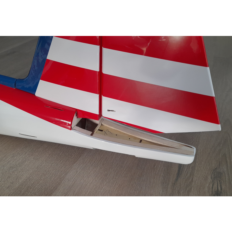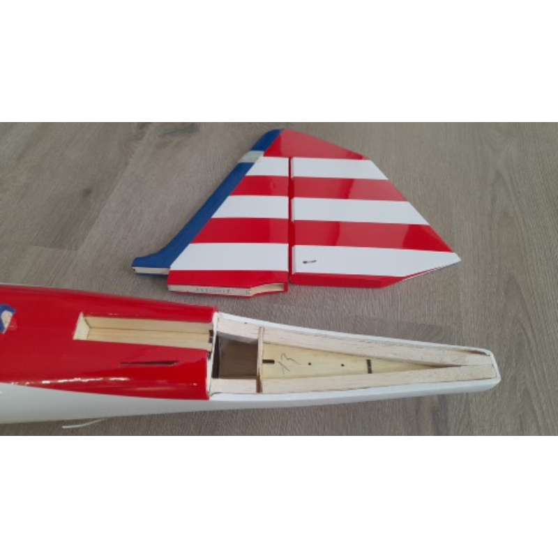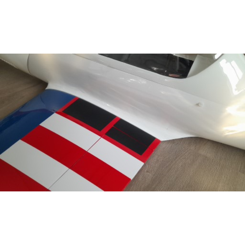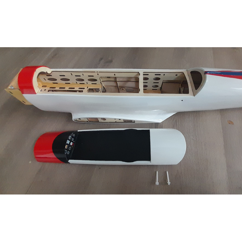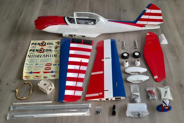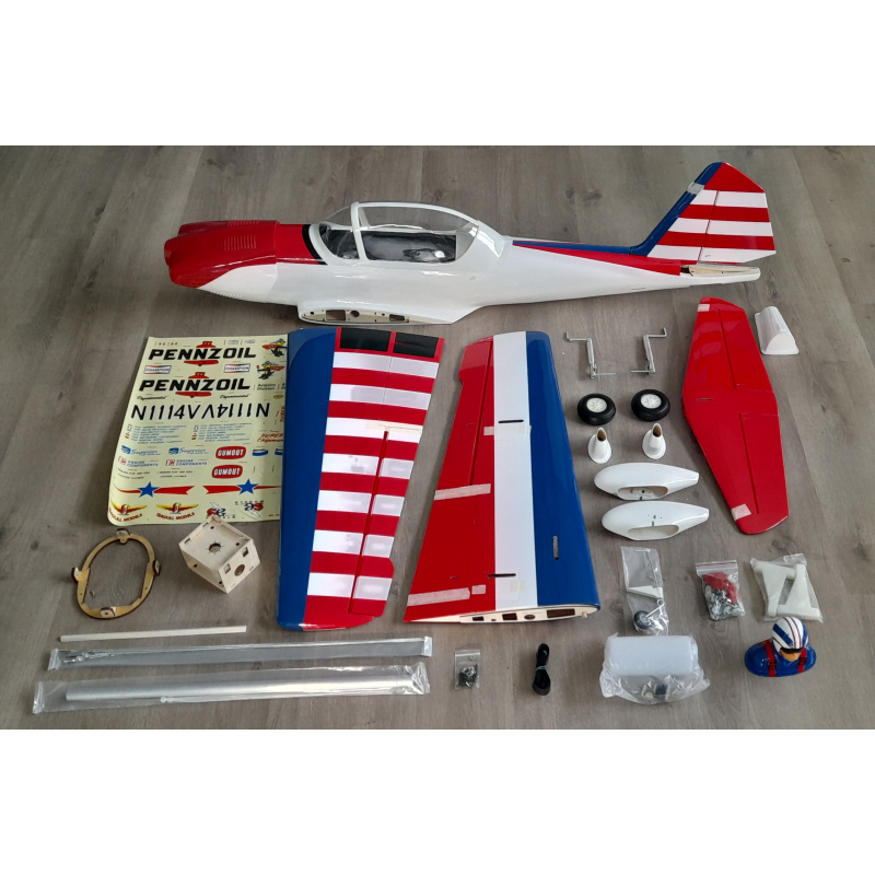 RC model letadla na dálkové ovládání poháněna elektrickým motorem o výkonu 1000W a spalovacím motorem 15ccm. Trup modelu je klasické konstrukce v kombinaci balsa /lehká překližka, motorový kryt je laminátový, odnímatelný. Serva a ostatní elektronika jsou uložena v prostoru kabiny, poloviny výškovkase ovládáí drátových táhel, směrovka se spřaženou ostruhou pomocídrátěného táhla. Přístup k elektronice umožňuje velký odnímatelný kryt. Trup modelu je klasické konstrukce v kombinaci balsa /lehká překližka, motorový kryt je laminátový, odnímatelný. Serva a ostatní elektronika jsou uložena v prostoru kabiny, poloviny výškovkase ovládáí drátových táhel, směrovka se spřaženou ostruhou pomocídrátěného táhla. Přístup k elektronice umožňuje velký odnímatelný kryt. Celý model je potažen nažehlovací fólií velmi realistický finišem. Všechny laminátové díly jsou nastříkané barvami odolnými vůči účinkům paliva. Dvoudílné křídlo s polosouměrným profilem je spojené duralovou trubkou. Křidélka a klapky jsou ovládána 2 nezávislými servy uloženými v obou křídlech.. Ocasní plochy jsou rovněž klasické celobalsové konstrukce. Stavebnice obsahuje: postavený a nažehlovací fólií potažený trup, křídlo a ocasní plochy, nastříkaný laminátový kryt motoru, odpružený duralový podvozek, kola, palivová nádrž,motorové lože, hlava pilota,sadu příslušenství a obrázkový návod. NÁVOD