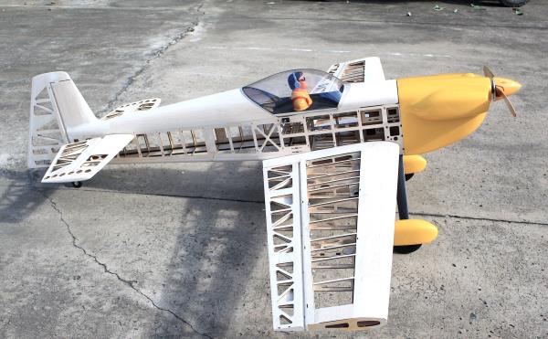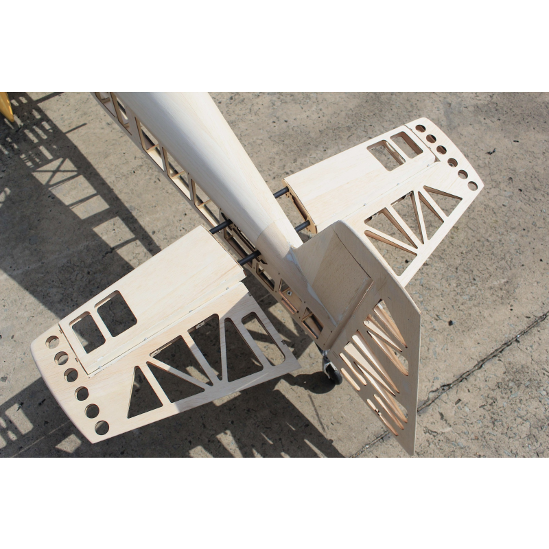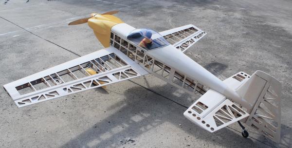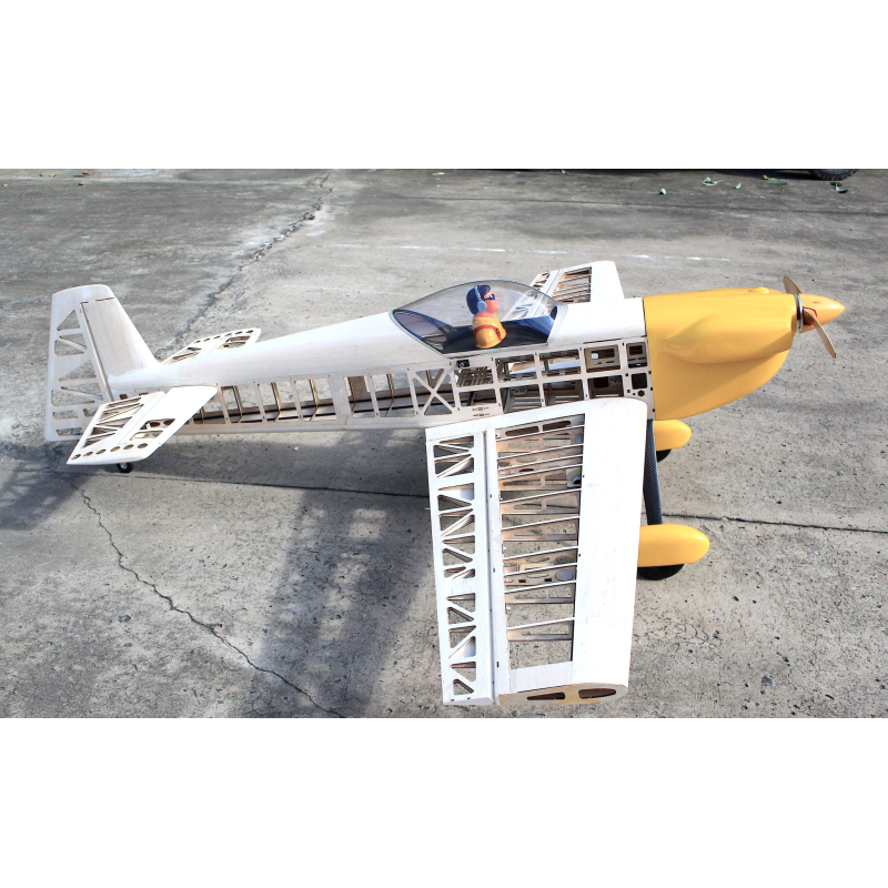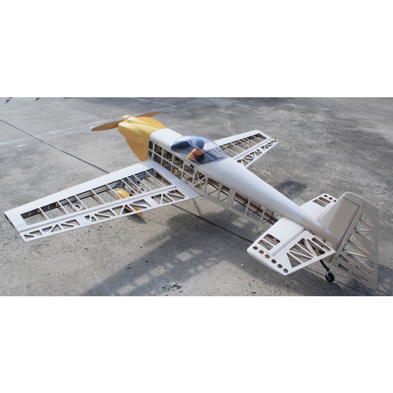 Polomaketa akrobatického letadla na dálkové ovládání poháněn elektrickým motorem o výkonu 800W a spalovacím motorem 10-15ccm. Super lehká a tuhá konstrukce s výbornou povrchovou úpravou osloví i náročné modeláře, kteří hledají sportovní model výborných letových vlastností. Trup modelu je klasické konstrukce v kombinaci balsa /lehká překližka, motorový kryt je laminátový. Celý model je potažen polyesterovou nažehlovací fólií a všechny laminátové díly jsou nastříkané barvami odolnými vůči účinkům paliva. Stavebnice obsahuje: postavený a nažehlovací fólií potažený trup, křídlo a ocasní plochy, nastříkaný laminátový kryt motoru, duralový podvozek, kola, palivovou nádrž, stavitelné motorové lože pro elektromotor, sadu příslušenství a obrázkový návod.