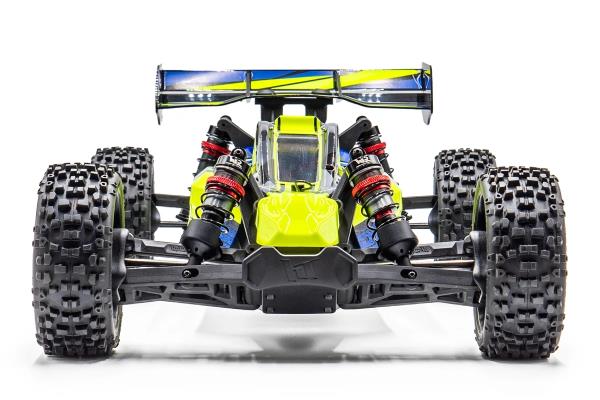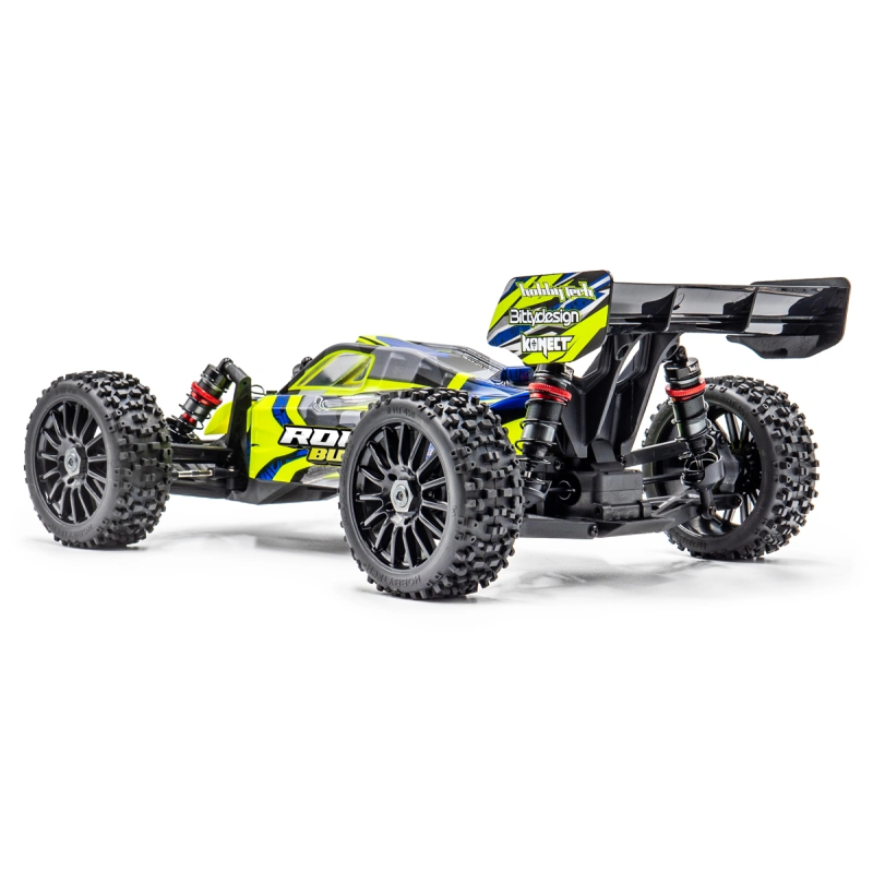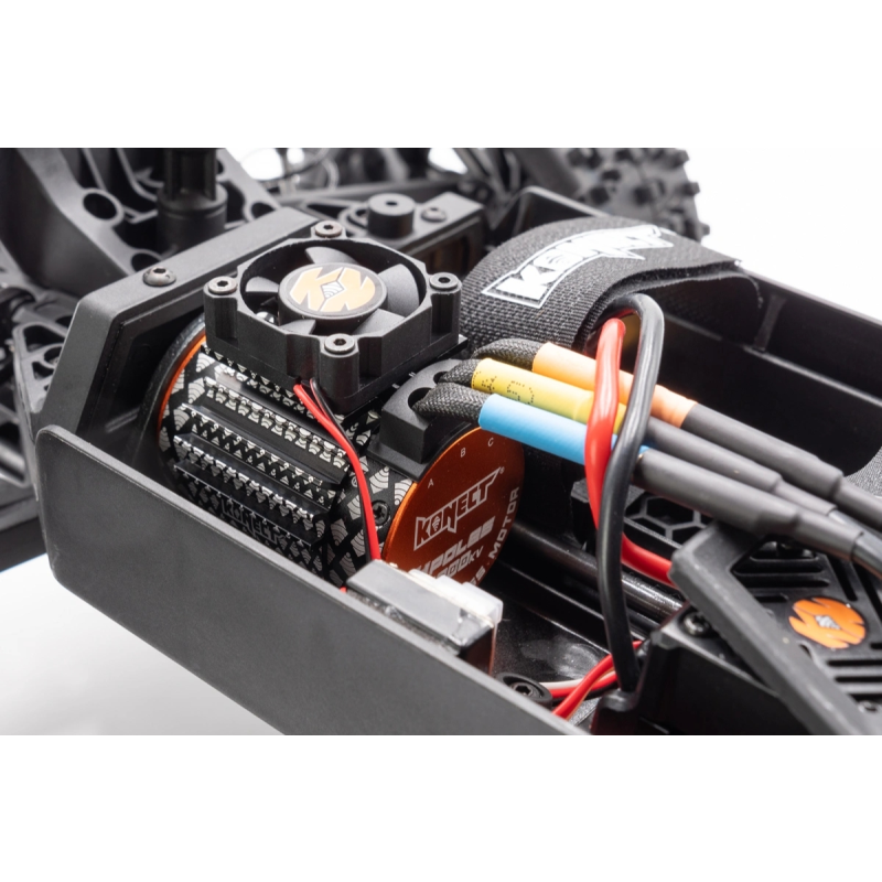 Tato buggy má pohonné ústrojí s náhonem na všechna kola, elektroniku Konect by Hobbywing a je vybavena velkoobjemovými celohliníkovými tlumiči.