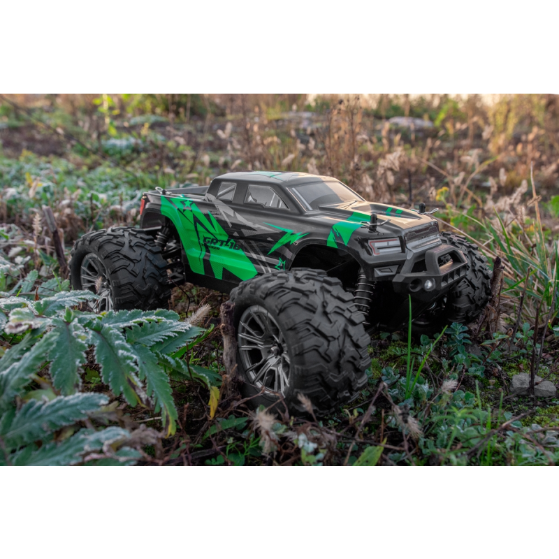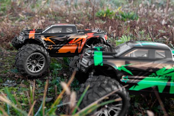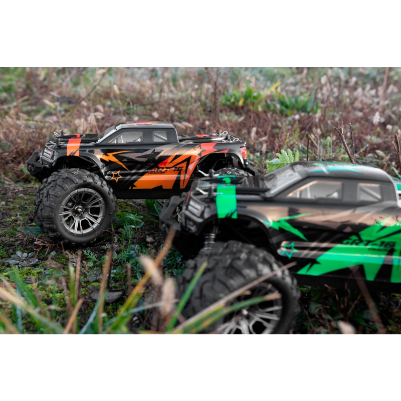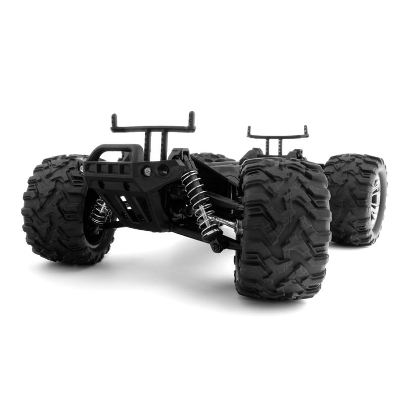 Tento malý monster truck se chlubí výrazně lakovanou karoserií s unikátním designem, který vás odliší od ostatních. Ale není to jen o vzhledu. Jednoduchá a pevná konstrukce podvozku nabízí odolnost, díky které odolá nárazům při pilování řidičské techniky.