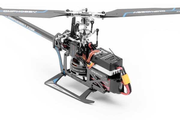 Elektroniku vrtulníku tvoří inteligentní řídící jednotka s integrovanou 3G flybarless řídící jednotkou, elektronickým regulátorem otáček s funkcí governoru a tři 10g digitální serva (1,65 kg.cm, 0,08 s/60°) ovládající CCPM (120°) mixovanou desku cykliky. Pro řízení vrtulníku budete potřebovat aspoň šestikanálovou RC soupravu s miniaturním přijímačem s S.BUS portem (nebo také DSM/DSMX). Pro obyčejné poletování nemusí být vysílač ani počítačový (všechny potřebné mixy obstarává řídící jednotka), stačí jen 4 kanály „na kniplech“ a pátý kanál s dvoupolohovým přepínačem pro přepínání režimů řídící jednotky se stabilizací a 3D. Samozřejmě, pro plnohodnotné klasické a 3D létání je třeba počítačový vysílač s nastavitelnými 2-3 letovými režimy s aspoň pětibodovými křivkami kolektivu pro visení a akrobacii a dalším režimem pro autorotaci.