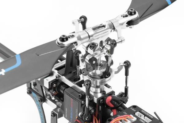 Robustní 4 mm hlavní hřídel je uložena v kuličkových ložiscích. Deska cykliky je duralová stejně jako rotorová hlava s unašeči listů. Díky 3G flybarless systému a elektronickému CCPM je rotorová hlava velmi jednoduchá. Unašeče listů nosného rotoru jsou nádhernou miniaturou unašečů „velkých" RC vrtulníků - se všemi těmi kuličkovými ložisky a tlumícími vložkami!