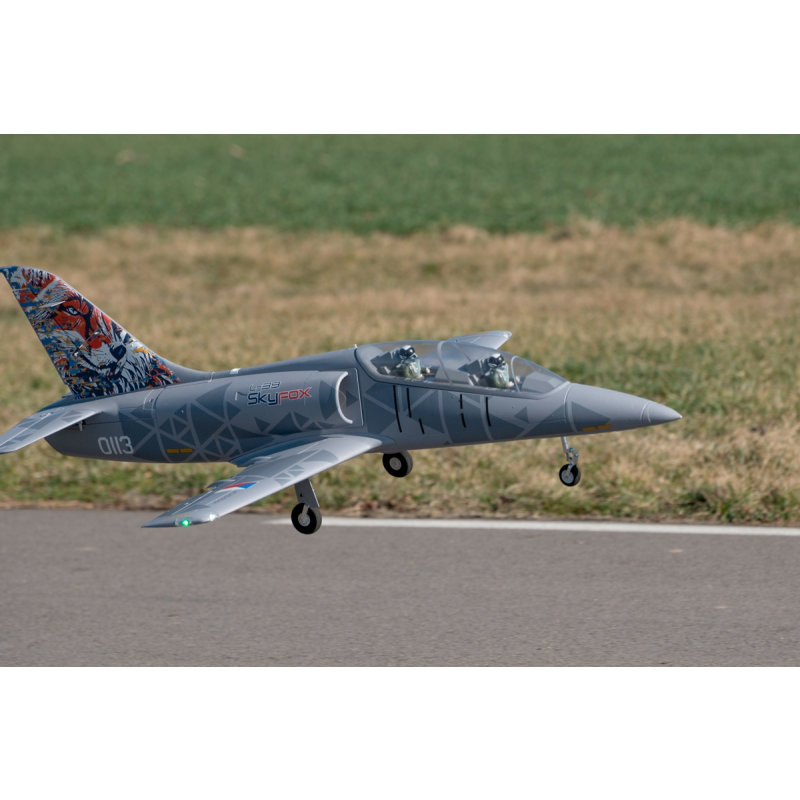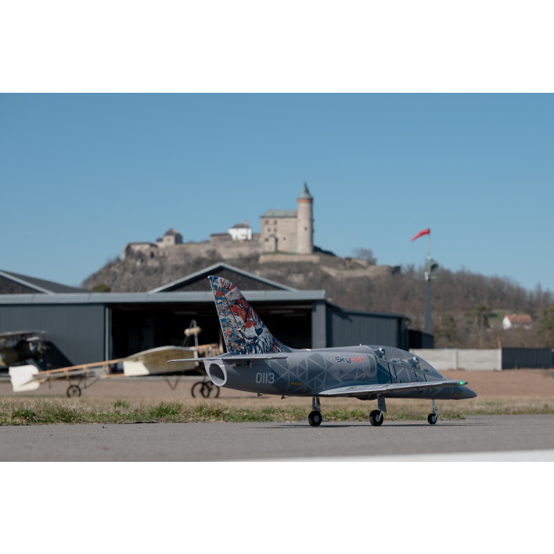 Sériová výroba L-39 Skyfox začala v květnu 2023 stroji pro české, maďarské a vietnamské letectvo; souběžně probíhá i program modernizace původních L-39 Albatros s použitím motorů a avioniky Skyfoxe. České cvičné proudové letouny tak nezmizí z oblohy ani v následujících letech... A vy si teď můžete užít létání s polomaketou tohoto nádherného stroje o rozpětí 1088 mm poháněnou 80mm dmychadlem s výkonným střídavým motorem.