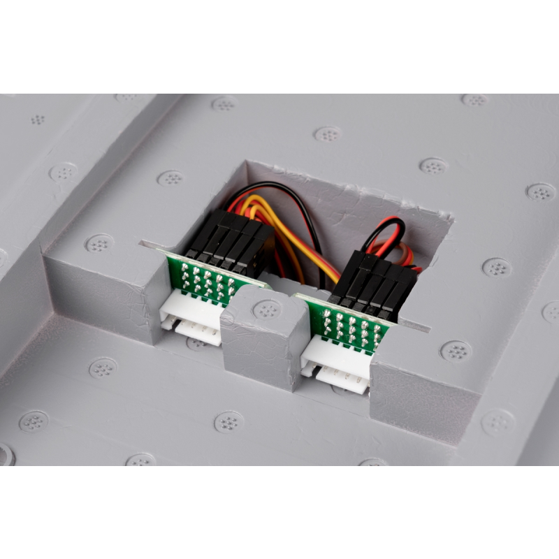 Pro ovládání modelu vystačíte i jen se šestikanálovou počítačovou RC soupravou bez speciálních funkcí – v základním provedení jsou křidélka, klapky, výškovka, směrovka a servo příďové nohy zapojeny pomocí zapojovací desky nainstalované v prostoru kabiny vždy jen do jednoho kanálu. Deska také zajišťuje napájení LED světel; připojený sekvencer má na starosti ovládání zatahovacího podvozku. V návodu samozřejmě nechybí důkladná tabulka s prověřeným výchozím nastavením výchylek kormidel, abyste L-39 snadno připravili k letu.